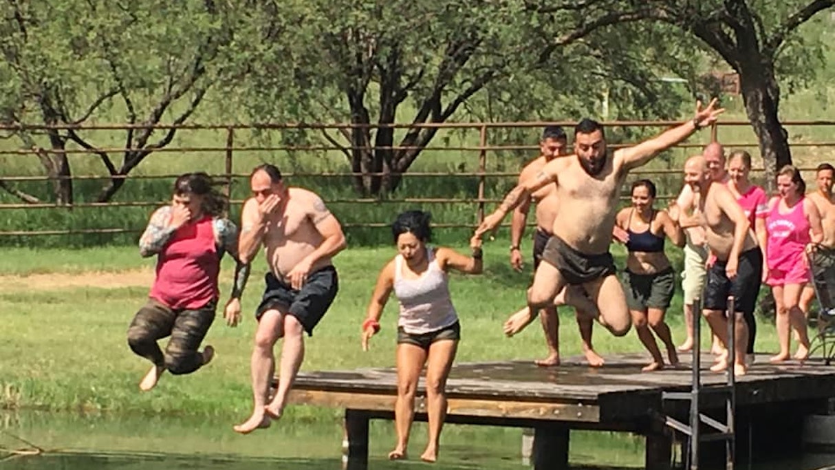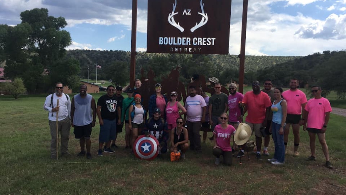 From Friday August 30th to Monday September 2nd the Marines and sailors of 1st Medical Bn executed a reunion aboard the beautiful grounds of the Boulder Crest Retreat (BCR) for Military and Veteran Wellness in Sonoita, AZ. The members of 1st Med deployed together as part of forward medical and trauma assistance to include Shock Trauma Platoon, Base Aid Station, and Forward Resuscitative Surgical Suites, throughout Iraqi during OIF I and II, and for many this was the first time they had had an opportunity to reunite. Throughout the weekend, 36 members of the unit took part in activities such as bean bag toss, archery, swimming, and even a hike in support of one of their sisters-in-arms that could not attend the reunion due her battle with cancer. These activities helped to rekindle their bonds and camaraderie from years past. The unit held a memorial service to honor their fallen service members and executed a service project in support of BCR to clear lanes for a new archery range onboard the camp as well as cleaning out multiple ponds at the facility.
