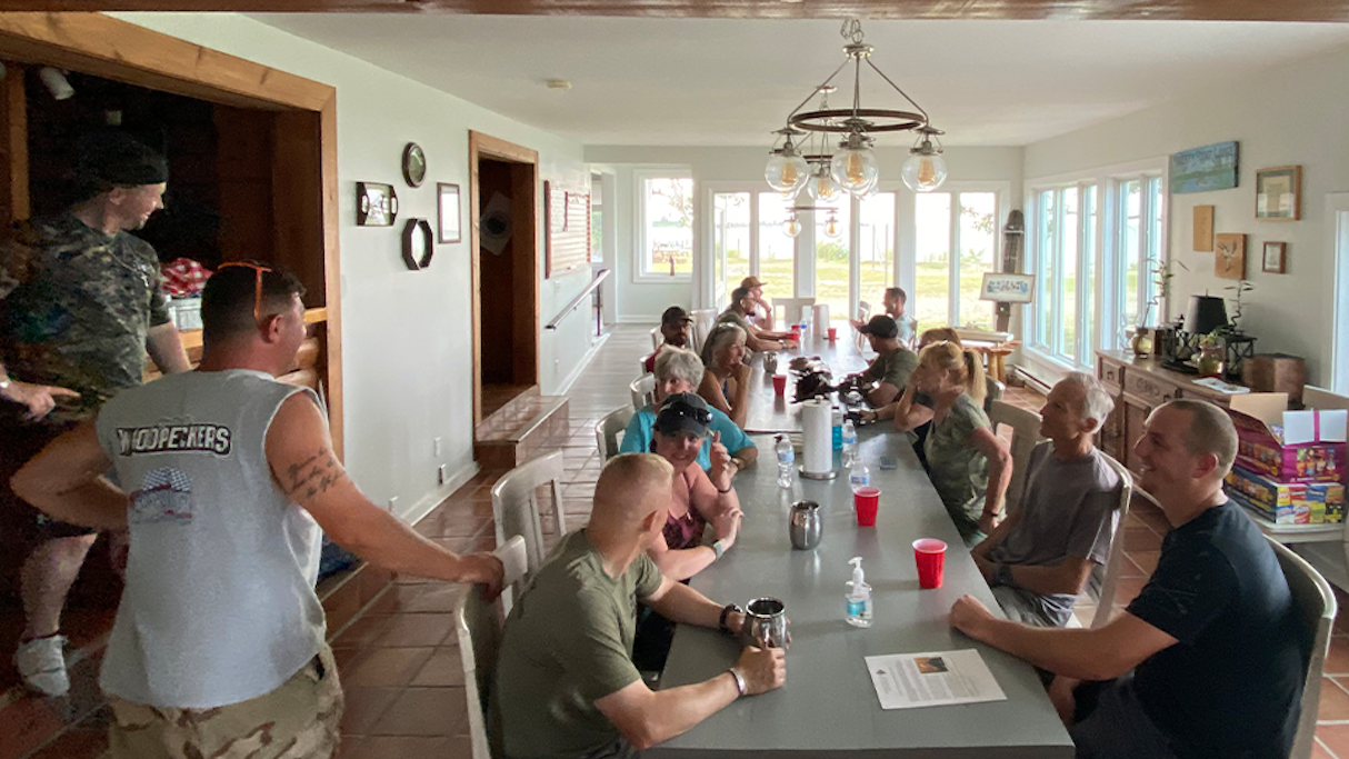 From Friday July 23rd to Monday July 26th the Soldiers & Gold Star Families of 618 Engineer Support Company executed a reunion aboard beautiful Patriot Point in Taylors Island, MD. The Soldiers of 618ESC were responsible for route clearance/Counter-IED operations for the safe passage of troops throughout the Afghan battlespace in 2009. This extremely dangerous mission was vital for coalition forces and saved an untold number of lives through their actions. Throughout the reunion weekend, the Soldiers and Gold Star Families spent their days engaging in activities such as bean bag toss, clay shooting, and fishing. Their evenings were spent around bonfires on the beach rekindling the bond that carried them through their deployment. 618ESC performed vital maintenance on the property of Patriot Point repairing duck blinds and unclogging an irrigation ditch that was damaged during summer storms.
