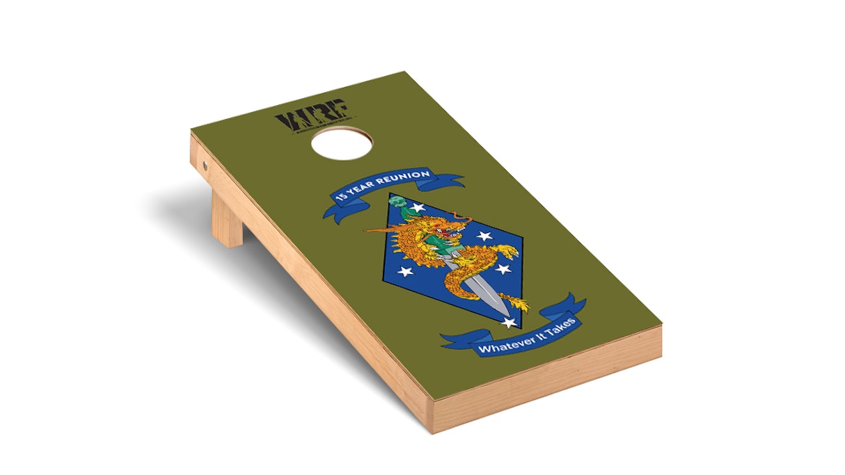This logo will be used for the mug, challenge coin, and cornhole boards. Below you will find examples from past reunions so that you understand what we are looking for.